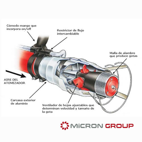 Su gran ventaja comparada con otros equipos convencionales, es el control que tiene sobre el tamaño de las gotas, que en materia de salud pública y plagas migratorias, esto es muy importante porque la pulverización garantiza ahorro de tiempo, máxima cobertura de penetración y una reducción en el desperdicio de líquido o químico a la hora de la aspersión.